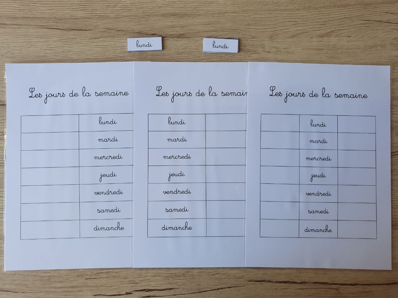 🔸 3 fiches A4 plastifiées pour travailler les notions "avant / après" 🔸 2 jeux de cartes "jours de la semaine" (2 x 7 cartes – 2 x 5 cm) 🔸 Activité possible en version écrite (feutre effaçable non fourni) 🔸 Utilisable seule ou en complément de la roue des jours