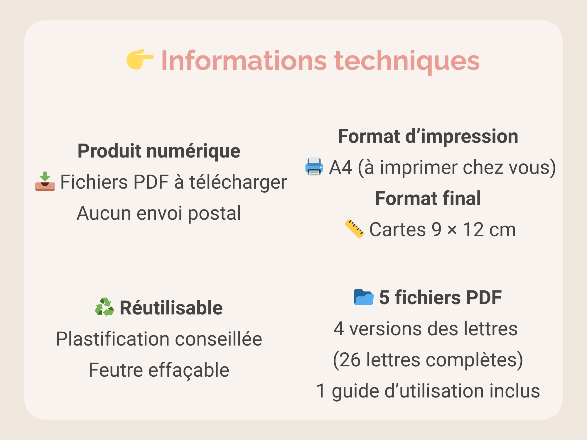 🔸 26 cartes plastifiées (9 x 12 cm) – idéales pour les petites mains